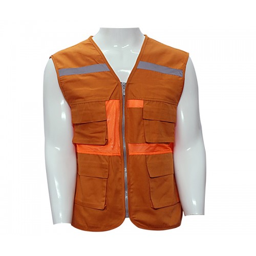 Áo Gile 4 túi hộp vải + lưới màu cam