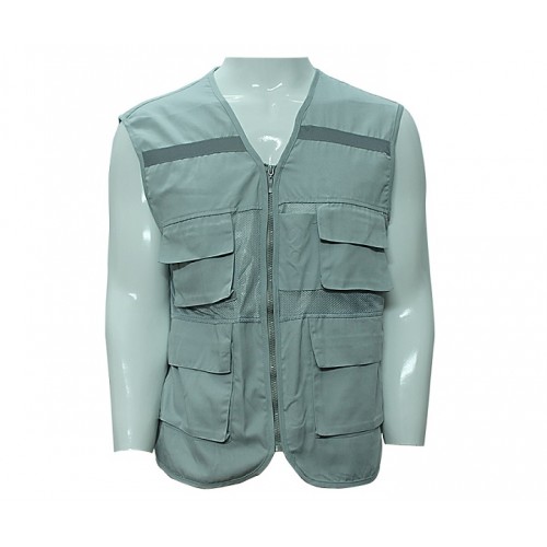 Áo Gile 4 túi hộp vải + lưới màu ghi đá