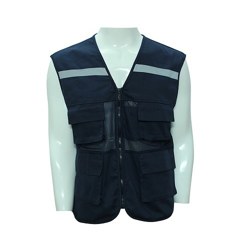 Áo Gile 4 túi hộp vải + lưới màu xanh blu